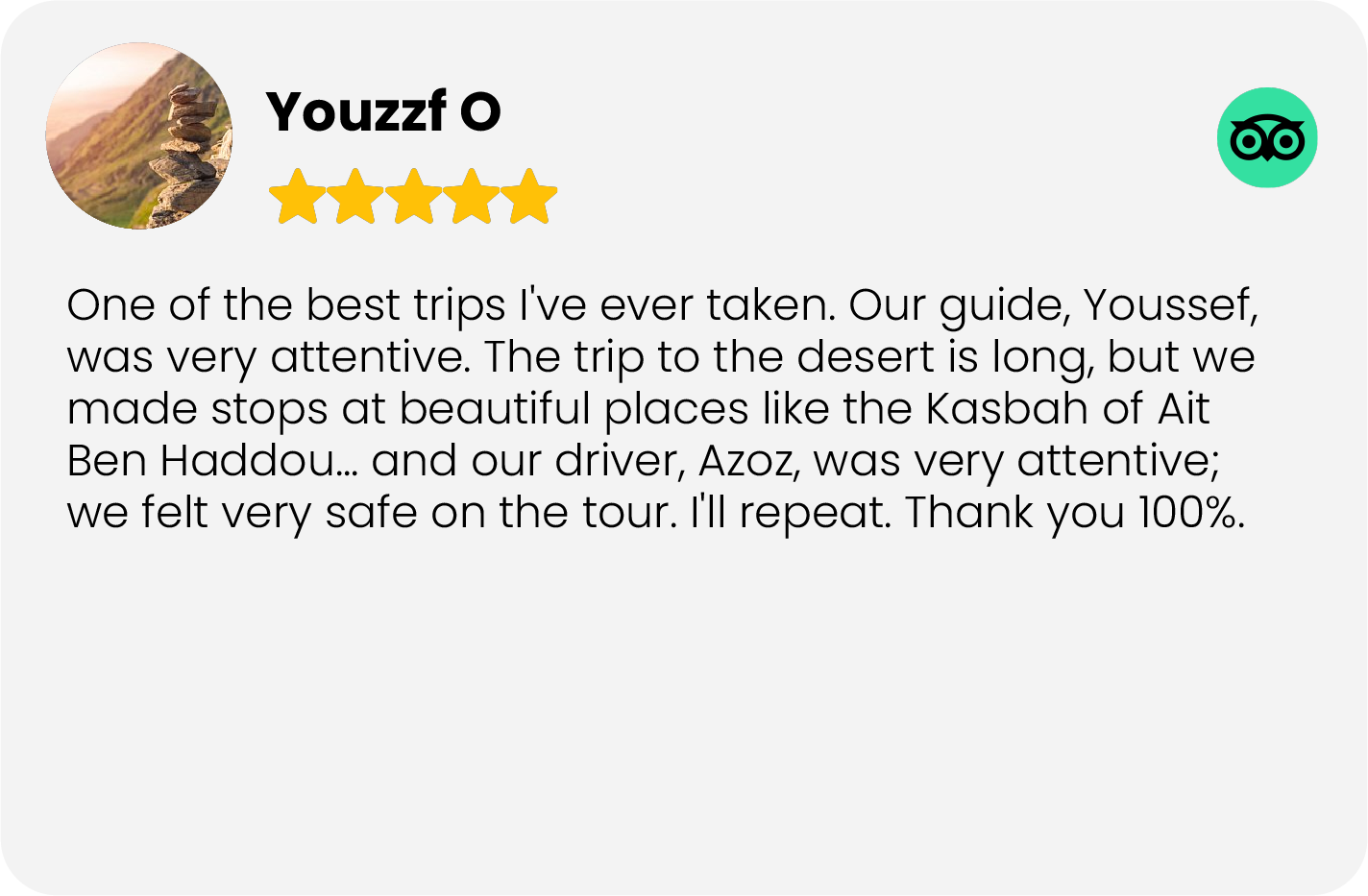 Embark on an adventure that will stay in your memory forever. Explore Morocco on our 5-day, 4-night tour from Marrakech.